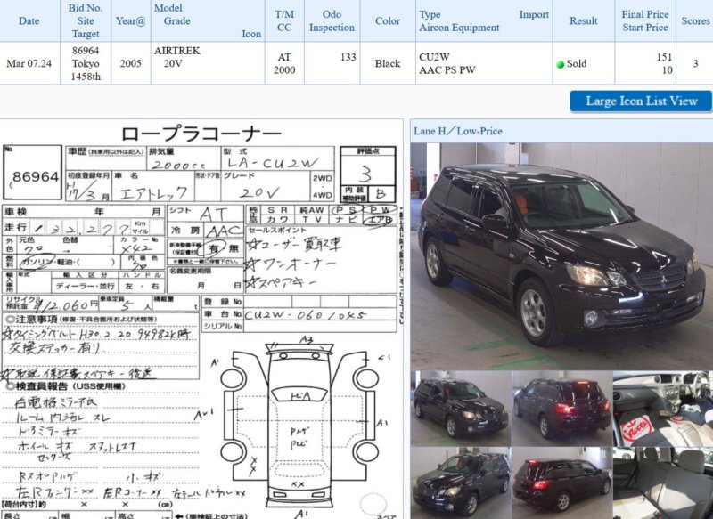 Автомобиль на разбор Mitsubishi Airtrek CU2W 4G63 2005